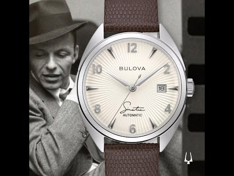 Incorporating vintage Bulova designs with the unmistakable elements of legendary performer, Frank Sinatra, the ‘My Way’ watch features a gold-tone stainless steel rectangular case with a silver white dial, gold-tone hands and markers. Frank Sinatra’s signature is displayed under the Bulova logo and his iconic Fedora hat is etched on the gold-tone crown, as well as on the case back along with the name, ‘My Way’. A distinct second hand sub sweep adds an elegant touch. The black leather strap features a deployant buckle and is stamped with the name ‘My Way’ along the inside. Watch features a curved sapphire crystal and water resistance to 30 meters.