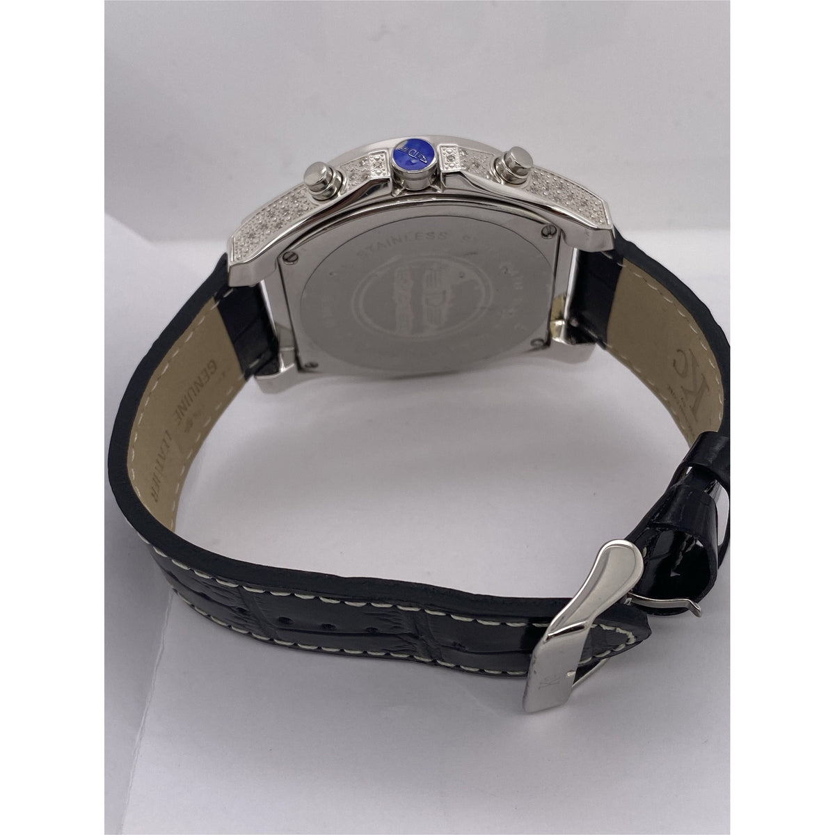 Techno Diezel Men's Diamond Bezel Blue/Silver Dial Black Leather Strap Watch